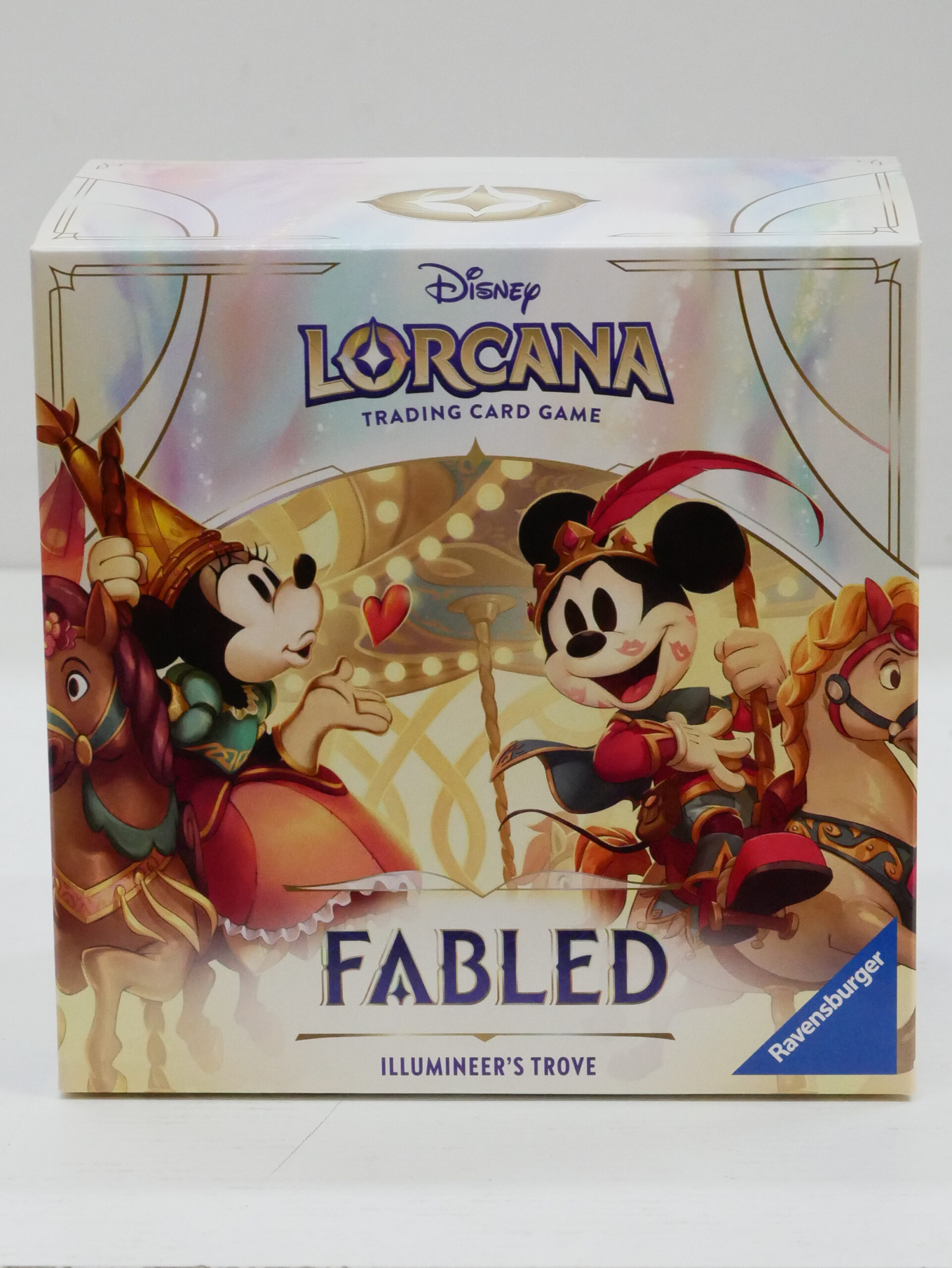 Il tesoro definitivo sia per i collezionisti che per i giocatori, l’Illumineer’s Trove include una scatola di stoccaggio completamente illustrata con sei divisori per le carte per tenere le tue carte Disney Lorcana TCG al sicuro e organizzate per inchiostro.